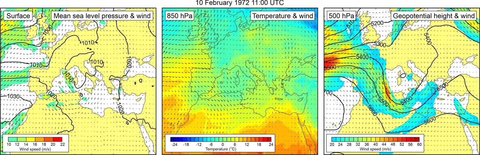 (8) Vela Luka, 10 February 1972 Figure 1. Synoptic situation at the time of the event: (left) mean sea level pressure and 10-m wind; (middle) temperature and wind at 850 hPa; (right) geopotential height and wind at 500 hPa. Tabain and Tabain (1994) cite a report, issued by the Harbor Master Office, which states “on… Continue reading (8) Vela Luka,10 February 1972